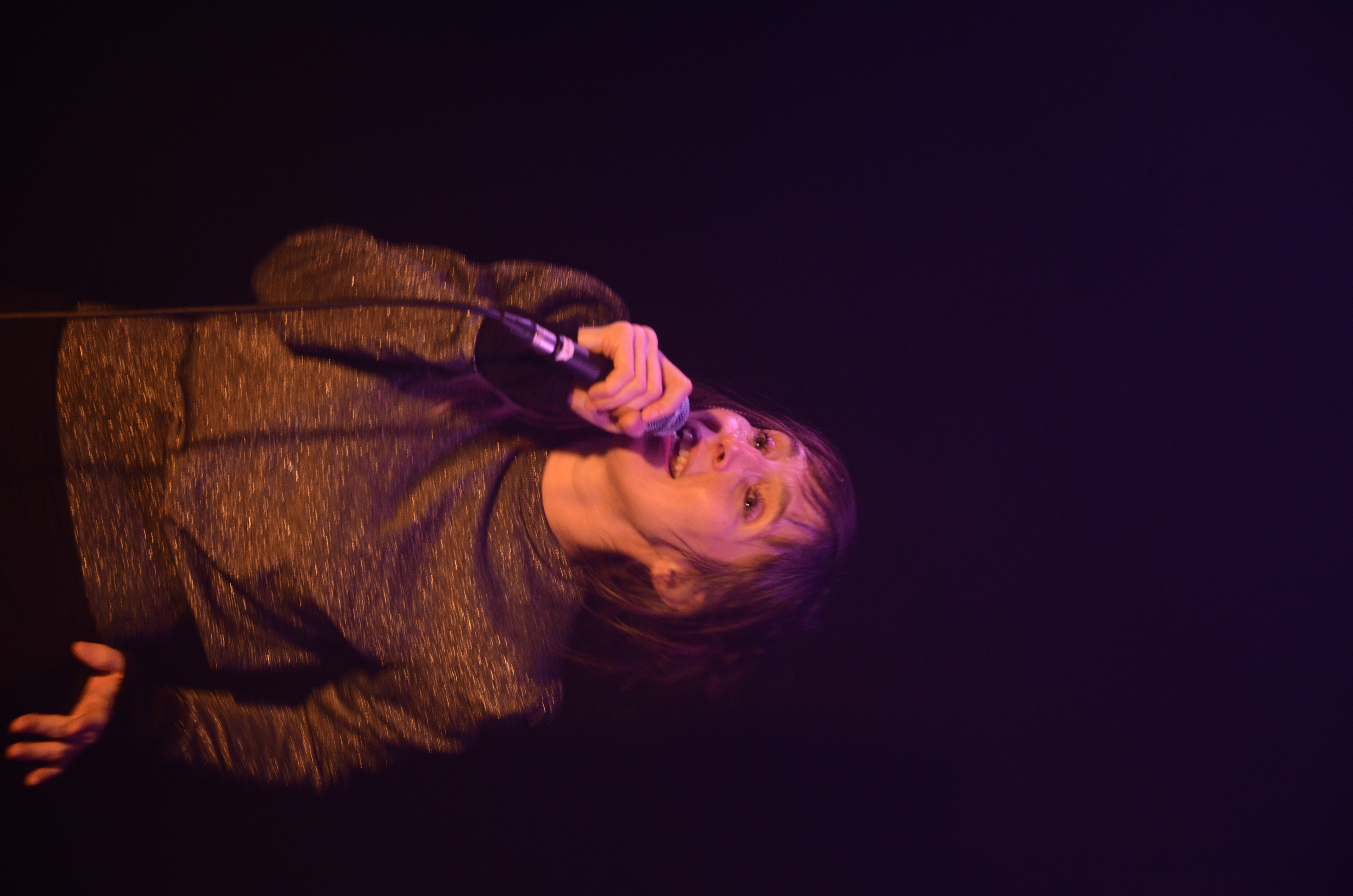 40 minutes dont 25 de lectures en anglais, 5 de chant a capella, et 10 de parole contée d'une écriture personnelle en français